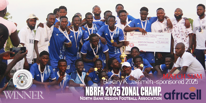 Champions of the second edition of the Bakary K. Jammeh–sponsored North Bank Regional Football Association (NBRFA) Zonal Competition, following a dramatic 3–2 victory over Sabach Sanjal Zone in a well-attended final at the North Star Academy Complex in Kerr Jatta.