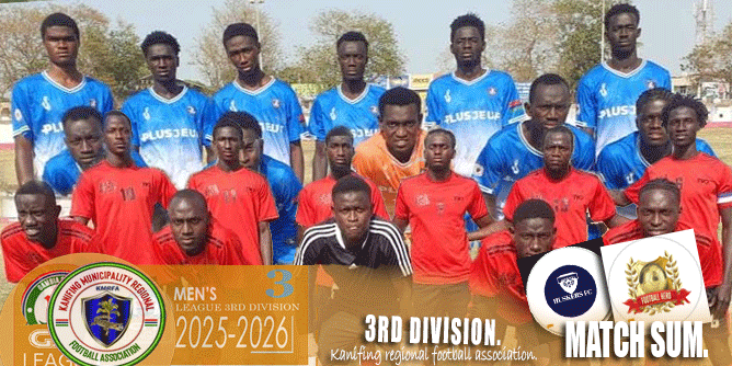 At the Bakau Mini Stadium, Fajara South FC defeated Universal Sporting Boys FC 2–1. Sorrie Barry (#10) scored in the 30th minute, Ousman Sanyang (#15) converted a penalty in the 40th minute, and Yankuba Sanneh (#13) pulled one back in stoppage time (90+3’).