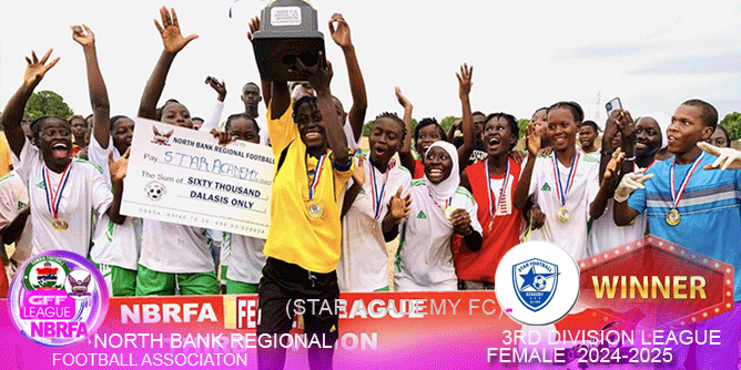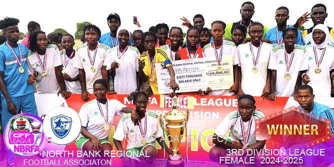 As winners, Star Academy FC were decorated with the official NBRFA trophy, gold medals, and a cash prize of D60, 000(Sixty Thousand Dalasis), while Central Baddibou United, as runners-up, received a consolation of D40, 000(Forty Thousand Dalasis). The victory marks a historic milestone for Star Academy and adds to the growing momentum behind women’s football in North Bank Region.